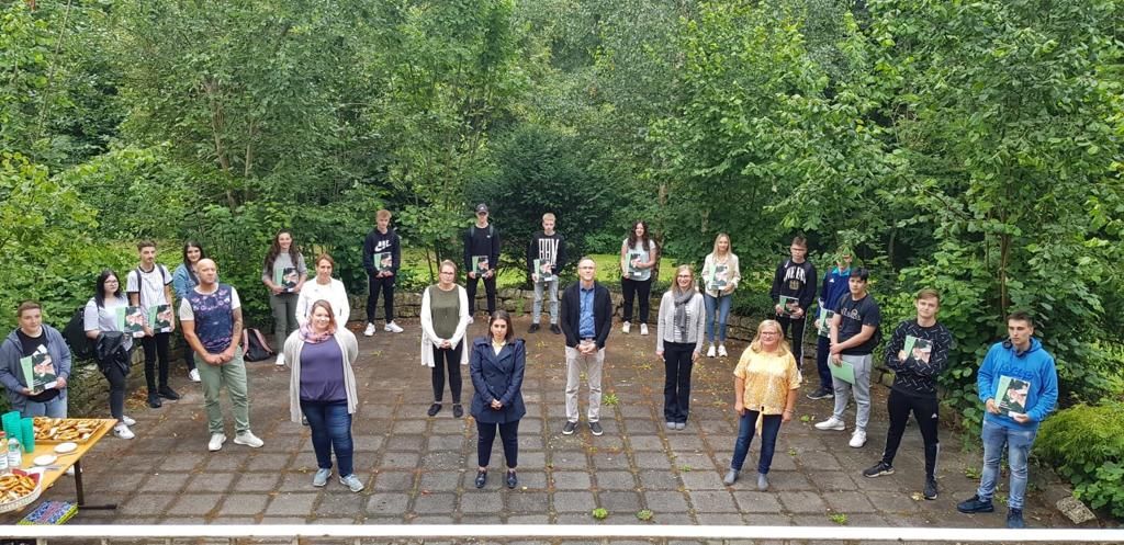 Für das Kaufmännische Berufskolleg I fand die Zeugnisübergabe wegen des Corona-Virus und der großen Klasse von 32 Schülern am 16.07. in zwei Gruppen statt.